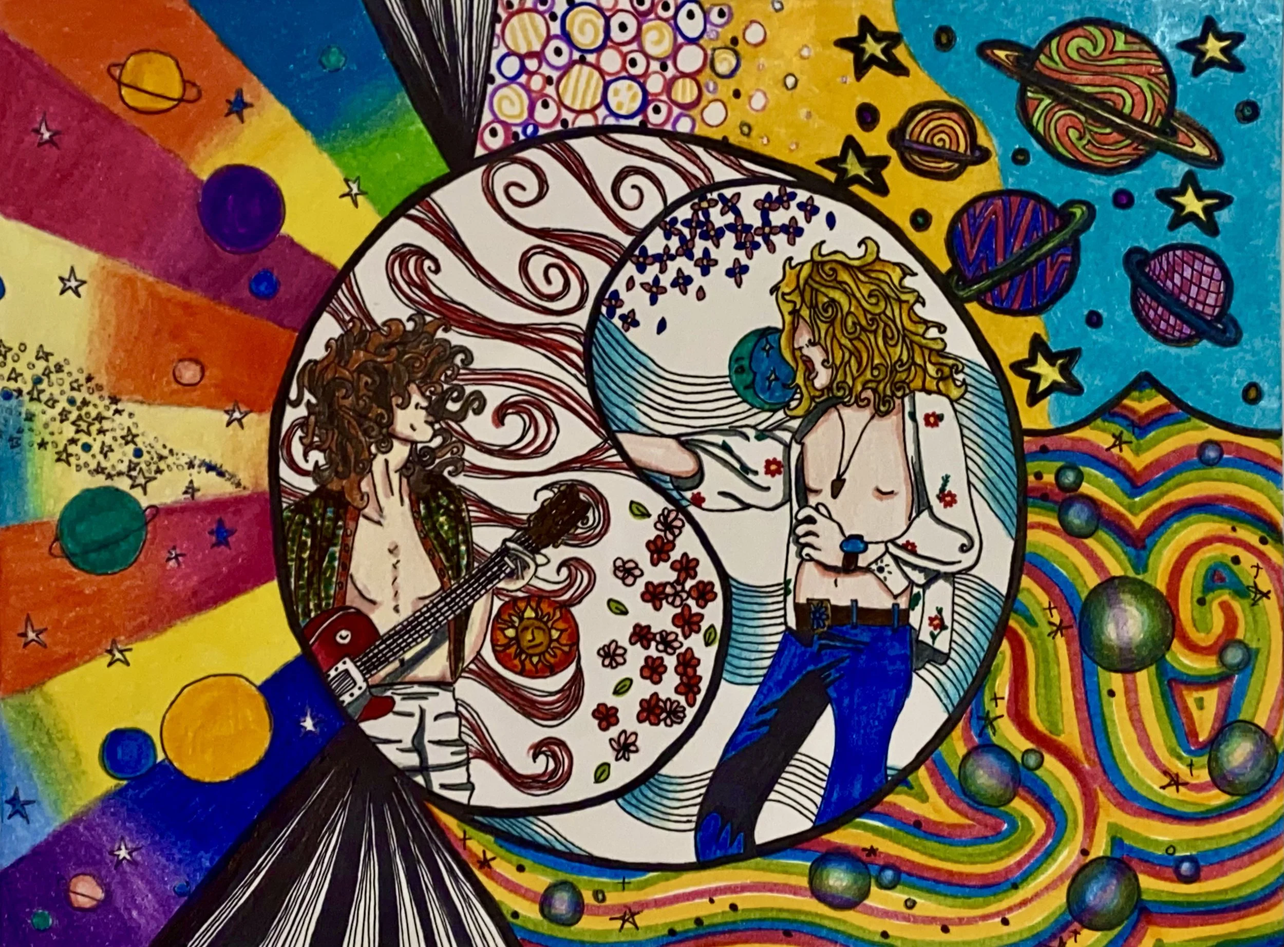 Led Zeppelin Robert Plant and Jimmy Page from Led ZeppelinMaterials Used: Marker, Colored Pencil Click this button to listen to Led Zeppelin’s discography. Led Zeppelin