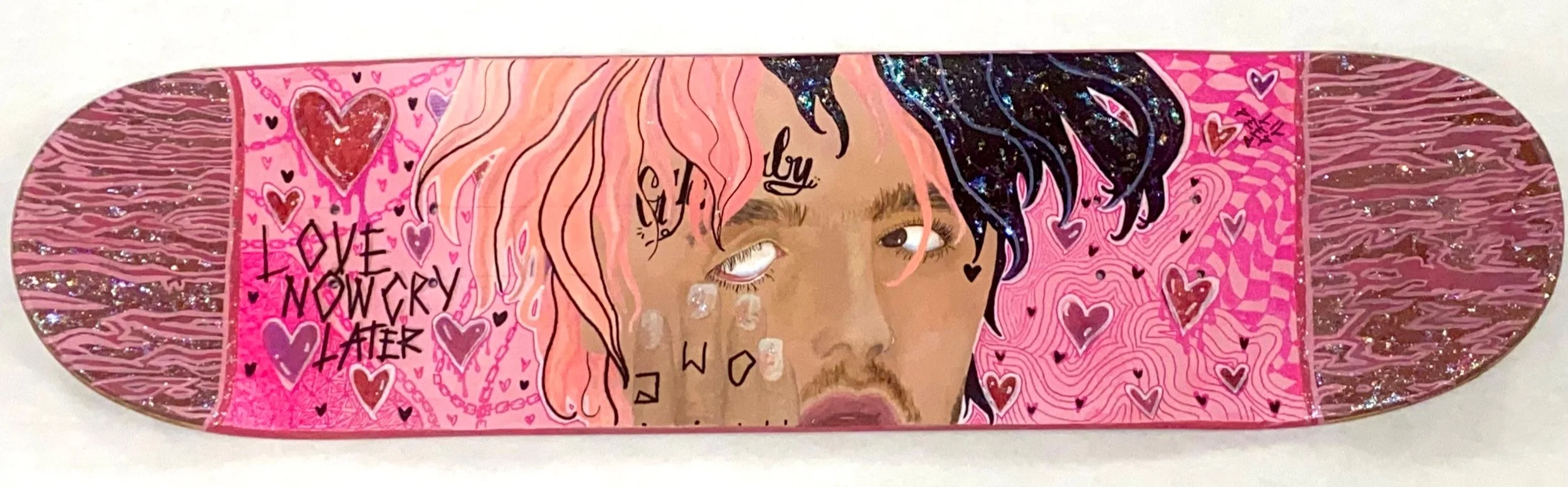 Inspired by one of my favorite artists, Lil Peep. This was the first skateboard I painted, and it came with its fair share of learning curves; but it turned out to be my favorite board so far.