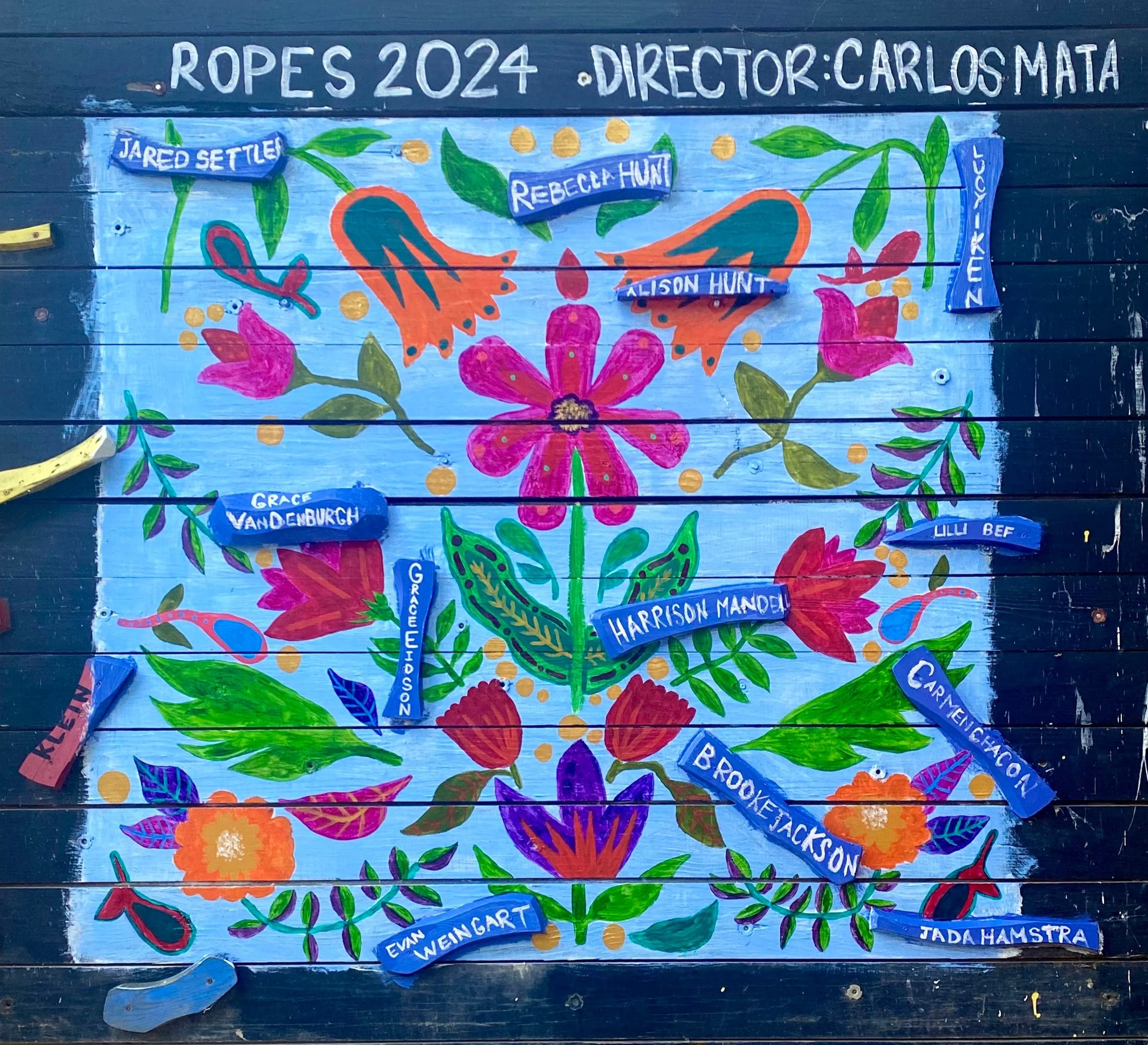 My first ever mural was on a rock wall at Camp Sabra, and I couldn’t have been more excited. At this camp, it’s a common tradition to paint or sign all of the area staff names somewhere every summer, and I wanted to make something a little more creative and colorful for the Ropes staff. I absolutely loved having the chance to paint this, and I would love the opportunity to do other murals in the future.