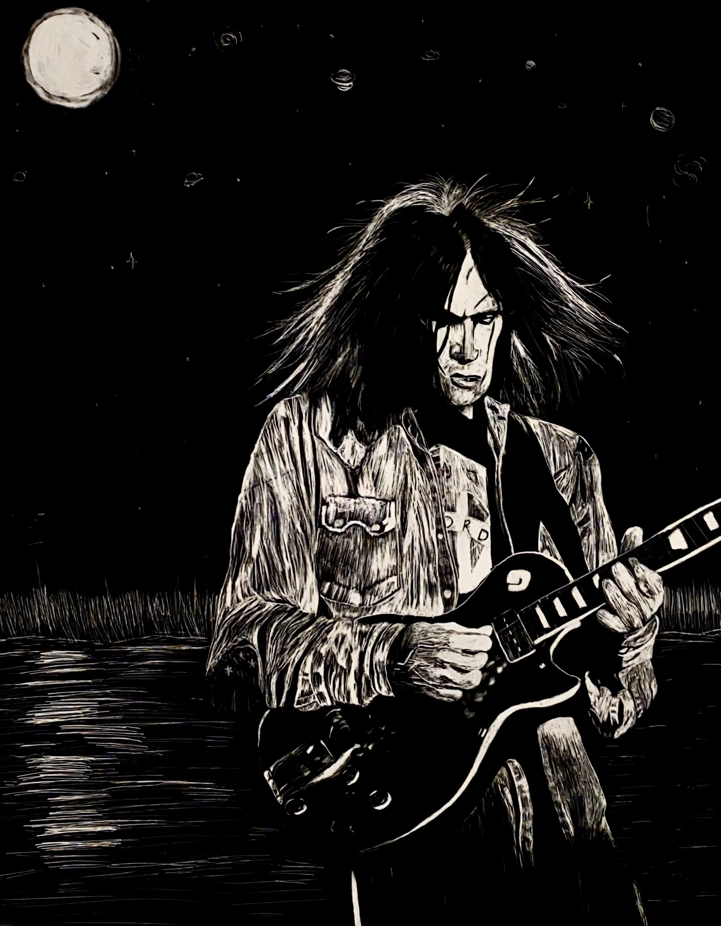 The first scratchboard I ever made, my freshman year of high school. I was very fascinated with the medium of scratchboards, and I wanted to capture to black and white essence by using a reference photo of Neil Young when he was Neil Very Young. I really like how this one turned out, but I’m really proud of the improvements I made with the next scratchboard.
