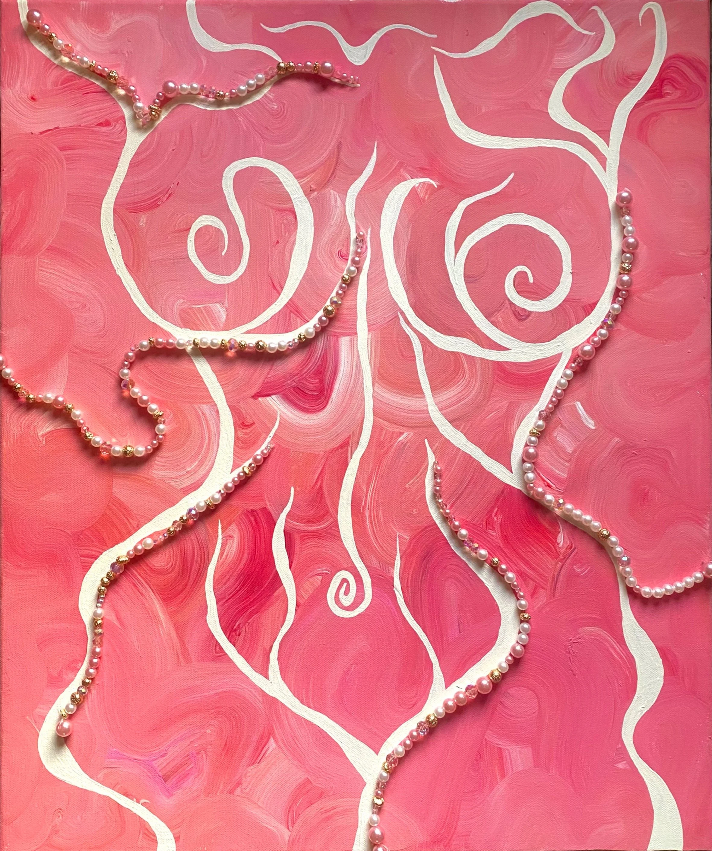 Materials used: Acrylic, craft pearls, super glue, 20x24 canvas
